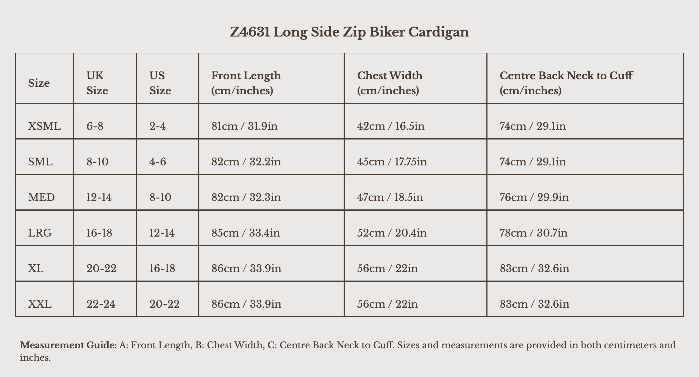 Available in sizes XS–XL, with chest measurements from 33" to 45" and lengths from 32" to 37". Whether you’re strolling through the countryside or enjoying a city day out, this Aran sweater coat delivers warmth, heritage, and effortless style.